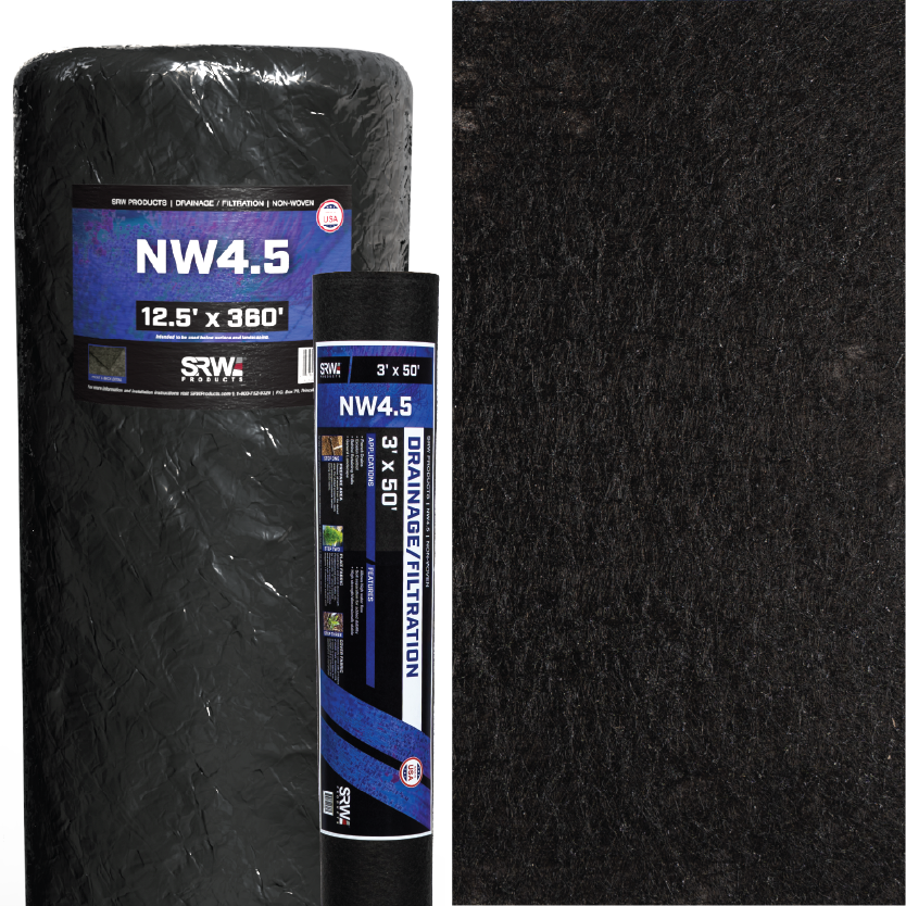 NW4.5 offers enhanced strength for demanding projects. This non-woven fabric provides superior puncture resistance and excellent filtration properties. This landscape fabric is perfect for use in challenging soil conditions or areas with high hydrostatic pressure. NW4.5 is also ideal for critical drainage applications, erosion control on slopes, and engineered retaining wall systems.